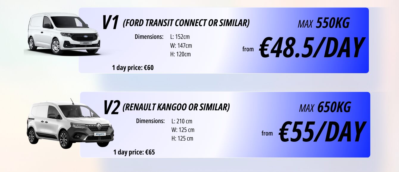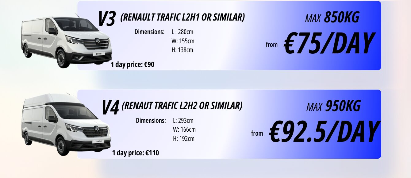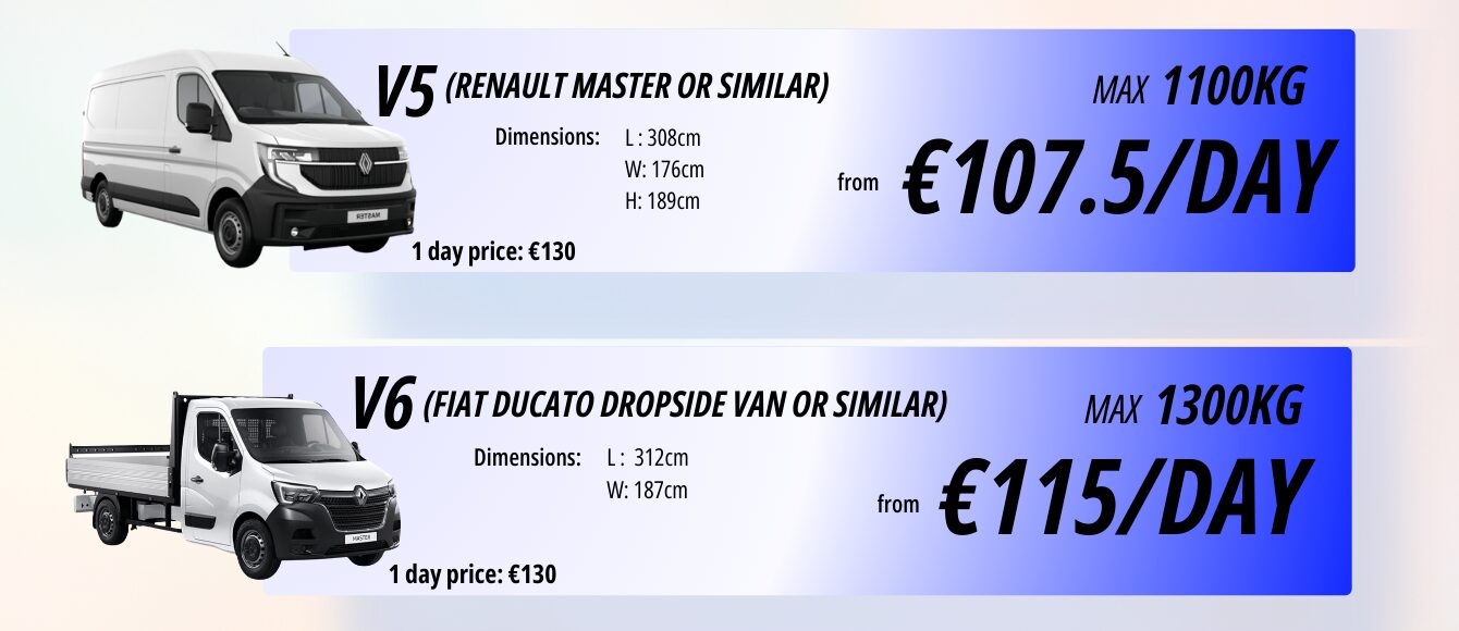 We offer daily, weekly, and long-term van hire across Cyprus. Below are our standard single-day prices.